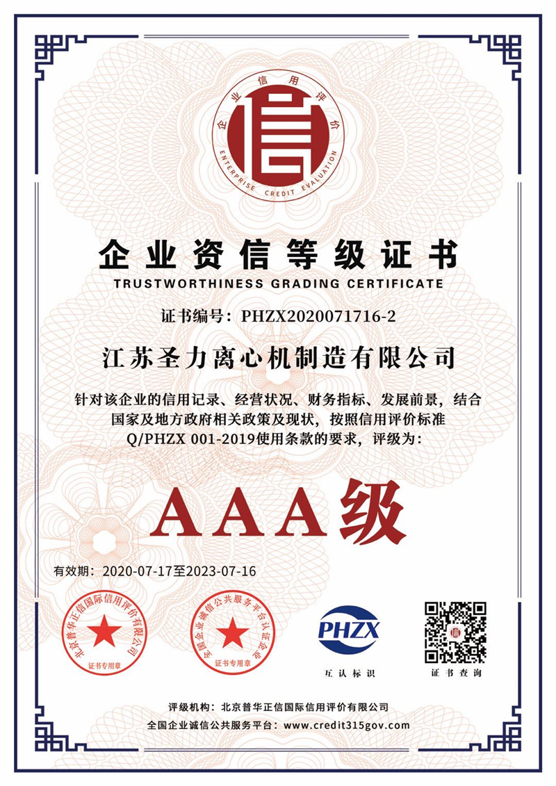 江蘇圣力離心機(jī)制造有限公司是國內(nèi)分離機(jī)械行業(yè)中主要的離心機(jī)生產(chǎn)企業(yè),對離心機(jī)的研究、設(shè)計、制造有多年的歷史,擁有齊全的設(shè)備、完善的檢測手段。公司已通過IS09000國際質(zhì)量體系認(rèn)證、ISO14001環(huán)境管理體系認(rèn)證、ISO45001:2018職業(yè)健康安全管理體系認(rèn)證和CE認(rèn)證,是江蘇省高新技術(shù)企業(yè),曾榮獲國家和地方多項榮譽稱號。